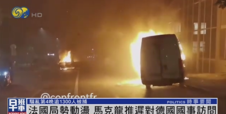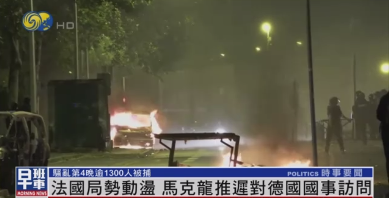 骚乱第4晚逾1300人被捕,马克龙推迟对德国国事访问