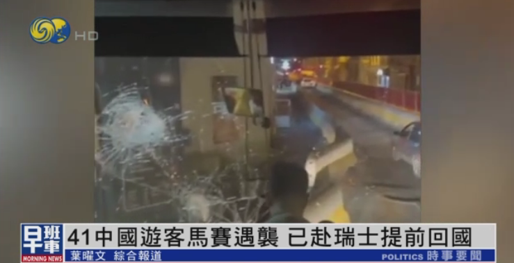 6月30日晚,一辆载有41名中国游客的大巴车在法国马赛遭到十几名黑衣人袭击,数名游客受轻伤,黑衣人还试图把乘客拉下车,但没有成功。