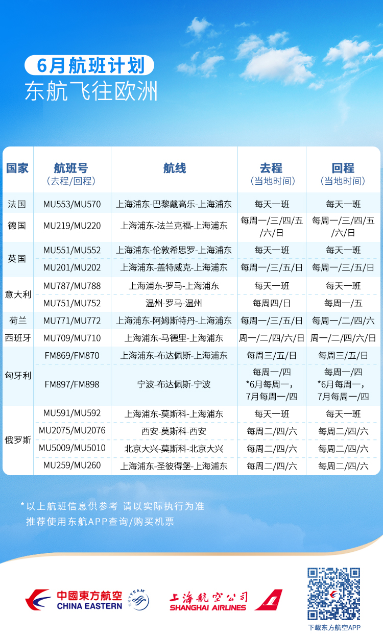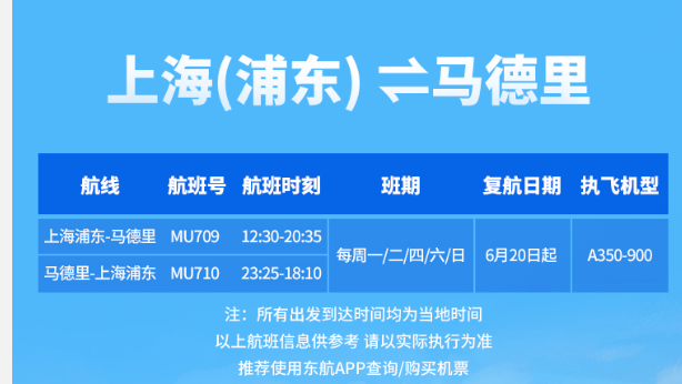 上海浦东一马德里,6 月 20 日起直飞开启: