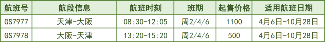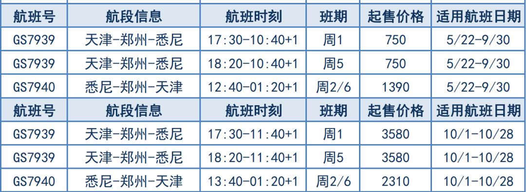 1. 航班时刻均为当地时;起售价格(人民币)不含税费;
