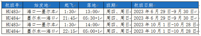 6 月 29 日,海南航空海口⇋墨尔本航线顺利复航,计划每周四、周日,执行 2 个往返航班。