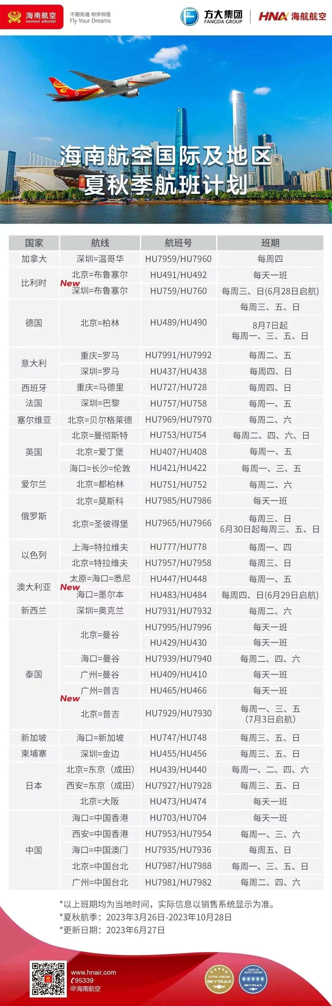 6 月 27 日,海南航空北京⇋都柏林航线顺利复航: