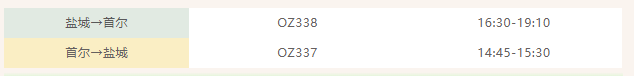 盐城=首尔航线,自 2023 年 7 月 12 日起复航,每周三运营一班。