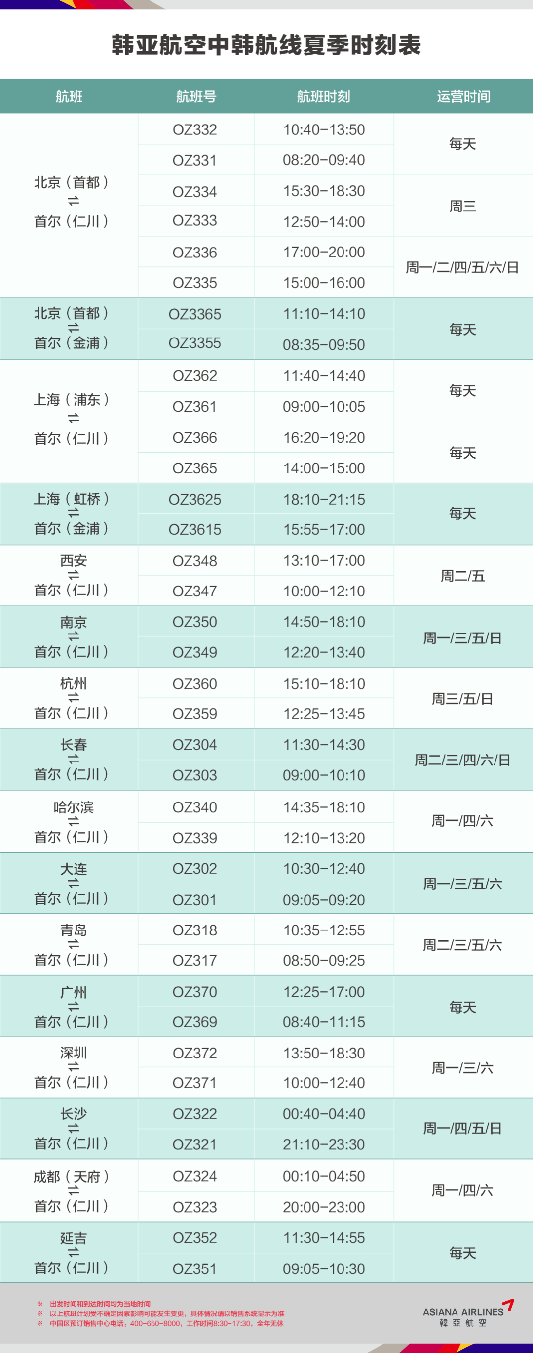 自 6 月起,韩亚航空部分航线运营时间有调整,计划出行的朋友们请留意以下最新时间啦~