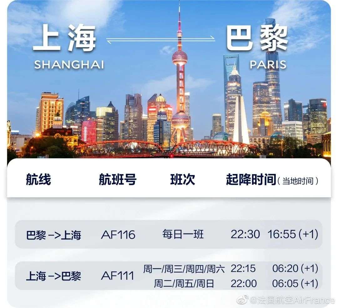 此外,上海⇋巴黎航线也逐步恢复中,自 2023 年 6 月 13 日起由每周三班增加至每周五班,并将于 2023 年 7 月 2 日起增加至每日一班!