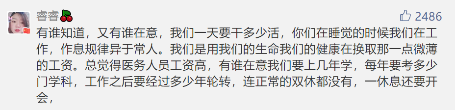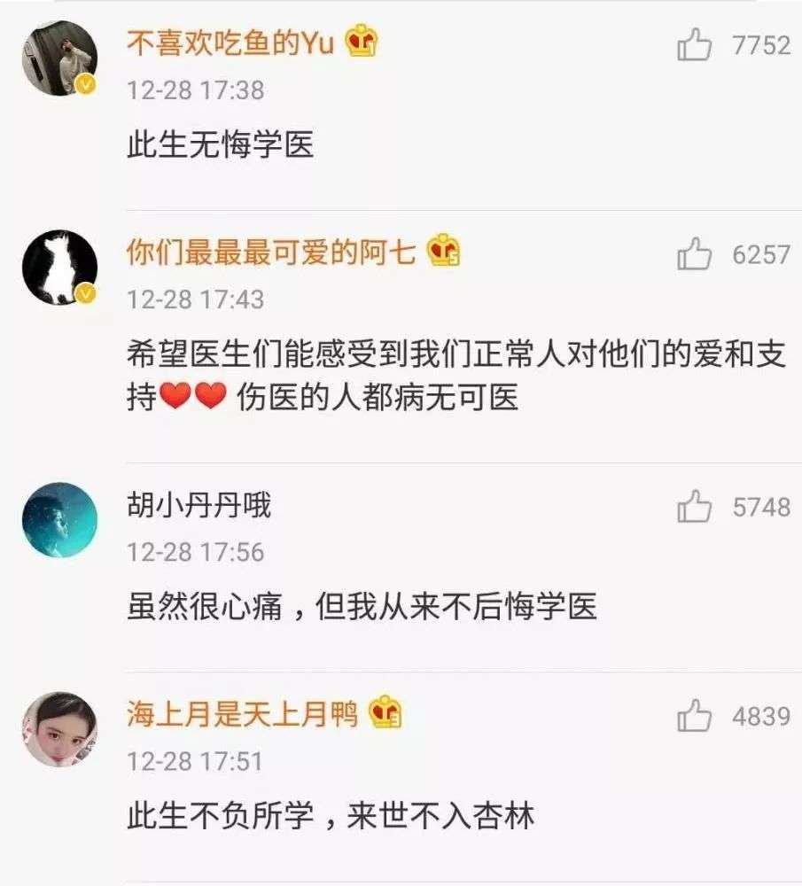众多评论中,有一位网友说,“希望杨文医生在天堂过得很好,来世不要再做医生了”,这段评论也得到了很多医生的回复……