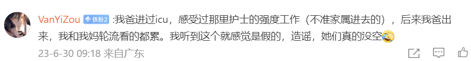 我爸进过icu,感受过那里护士的强度工作(不准家属进去的),后来我爸出来,我和我妈轮流看的都累。我听到这个就感觉是假的,造谣,她们真的没空。
