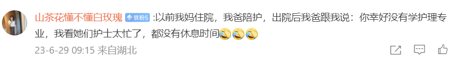 以前我妈住院,我爸陪护,出院后我爸跟我说:你幸好没有学护理专业,我看她们护士太忙了,都没有休息时间。