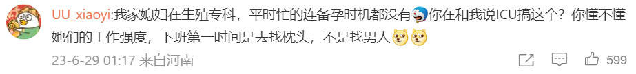 我媳妇在生殖专科,平时忙得连备孕时机都没有。你在和我说ICU搞这个?你懂不懂她们的工作强度,下班第一时间是去找枕头,不是找男人