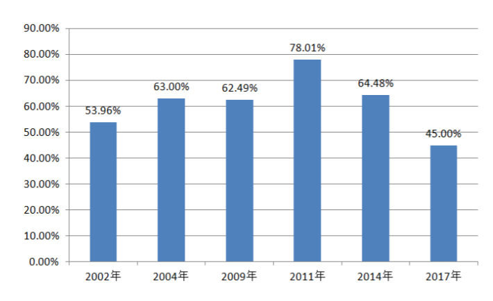 过去10年,中国25~34岁的医生比例从31.3%降至22.6%,而60岁以上的医生比例从2.5%增加至 11.6%。