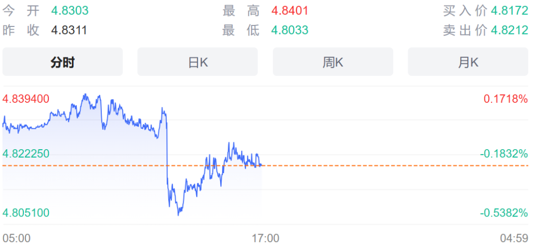 直接来了个过山车,还是直降的那种,从最高4.8401直接落到4.8033!
