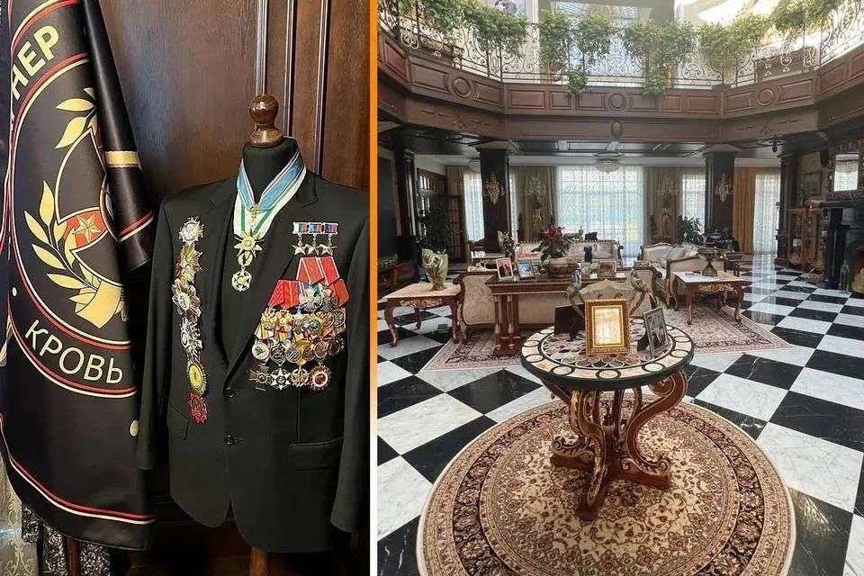 此外,媒体公布的照片中还有普里戈任在2022年6月20日被授予俄联邦“英雄”称号的荣誉证书,以及一件挂满勋章的夹克。第一排是三枚英雄奖章——俄联邦英雄、“顿涅茨克人民共和国”英雄和“卢甘斯克人民共和国”英雄;下面是两枚勇气勋章,通常被授予“在维护公共秩序、打击犯罪、紧急情况下营救人员中表现出奉献精神、勇气和勇敢的人,以及在执行军事、民事或公务时冒着生命危险采取大胆和果断行动的人”。