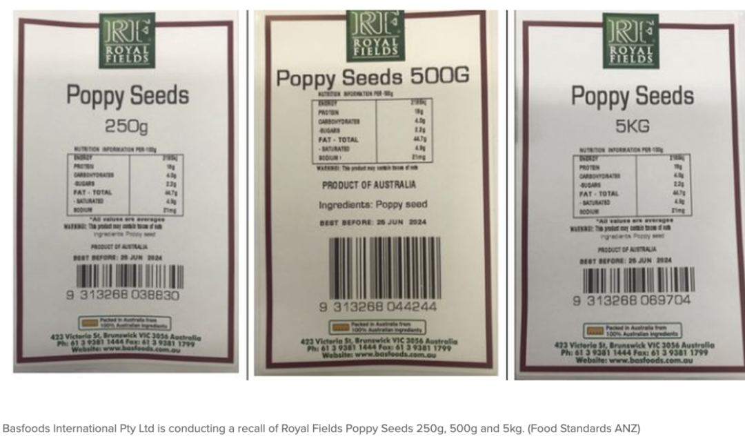 澳大利亚和新西兰食品标准局前段时间就已经对在维州Coles和独立超市销售的250克、500克和5公斤包装的罂粟籽发出了召回通知。
