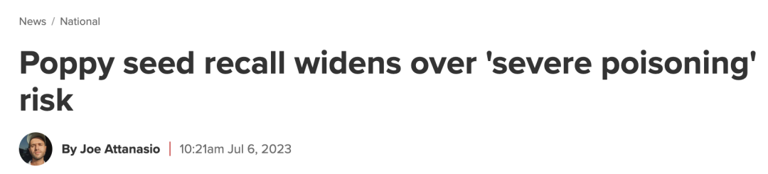 由于担心摄入罂粟籽会 "严重中毒",在澳洲主要超市销售的一种罂粟籽的召回范围已经扩大到多个州。