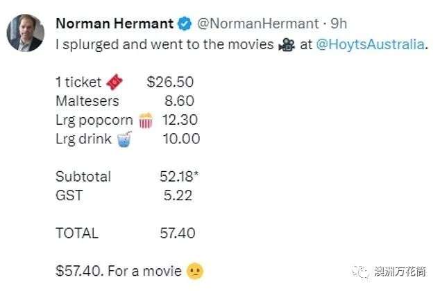 收藏在澳洲看一场电影需要近$60!电影院收据网上疯传,网友:就是在敲竹杠