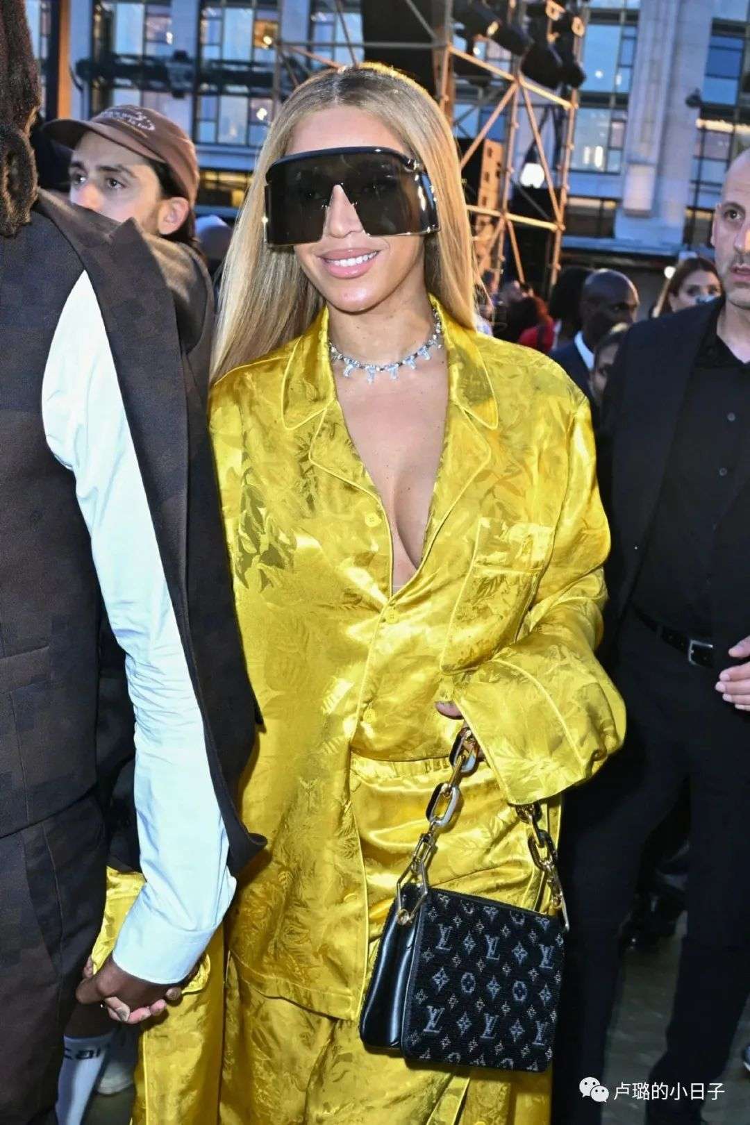 另一天后碧昂丝,碧局,也和丈夫JAY-Z一块现身,前不久她刚在巴黎和马赛办完演唱会,这不,顺道也来蹦个迪。不过比起蕾哈娜穿的随性牛仔,她这身金色打扮更像是来摆拍的。