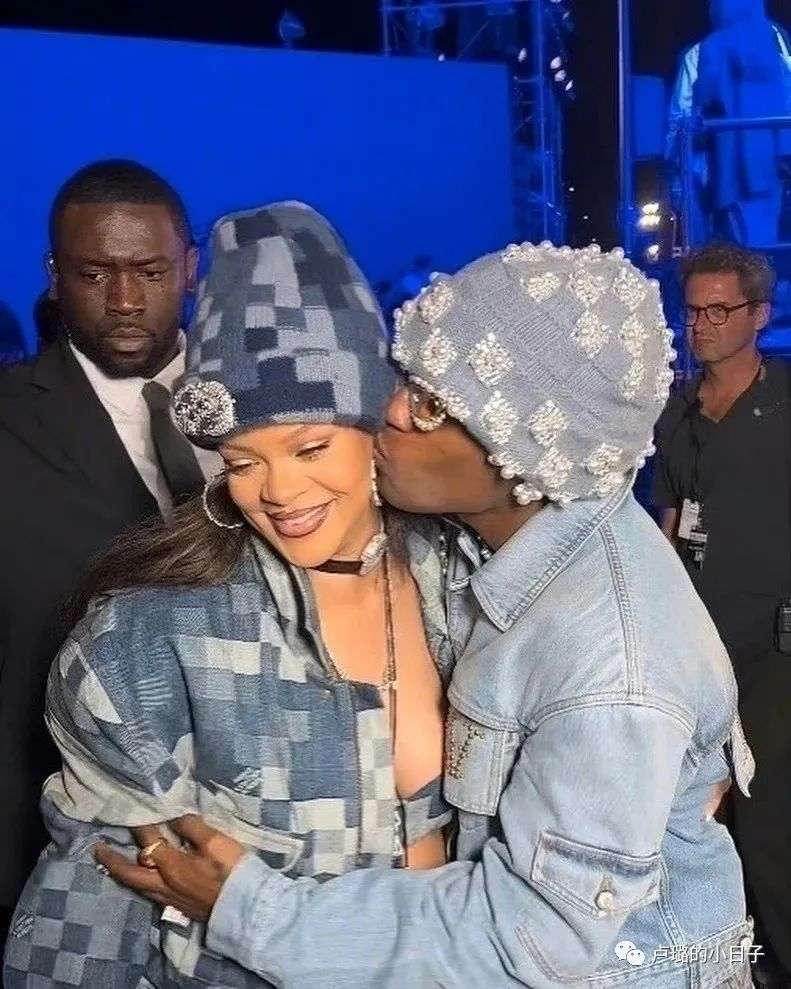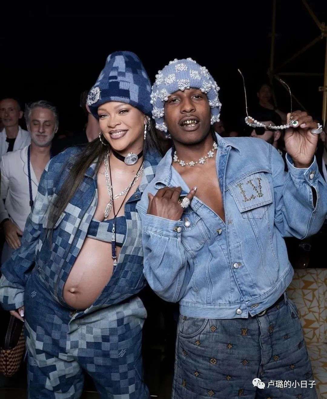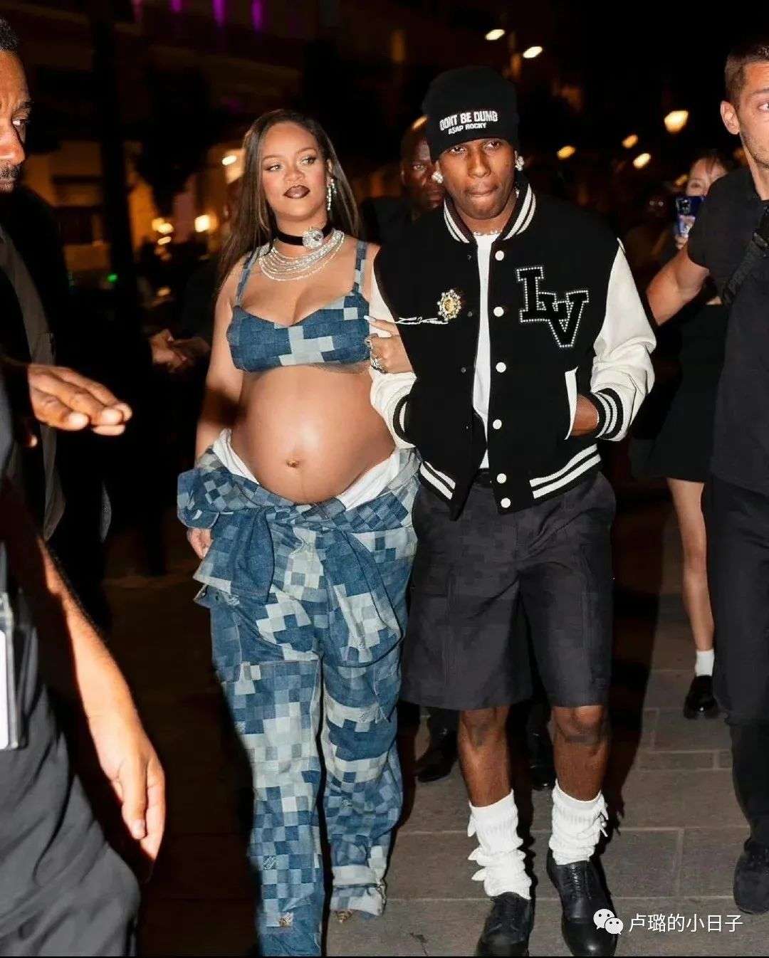 天后蕾哈娜带上了男友A$AP ROCKY,挺着大孕肚来捧场。