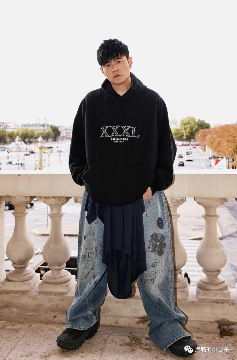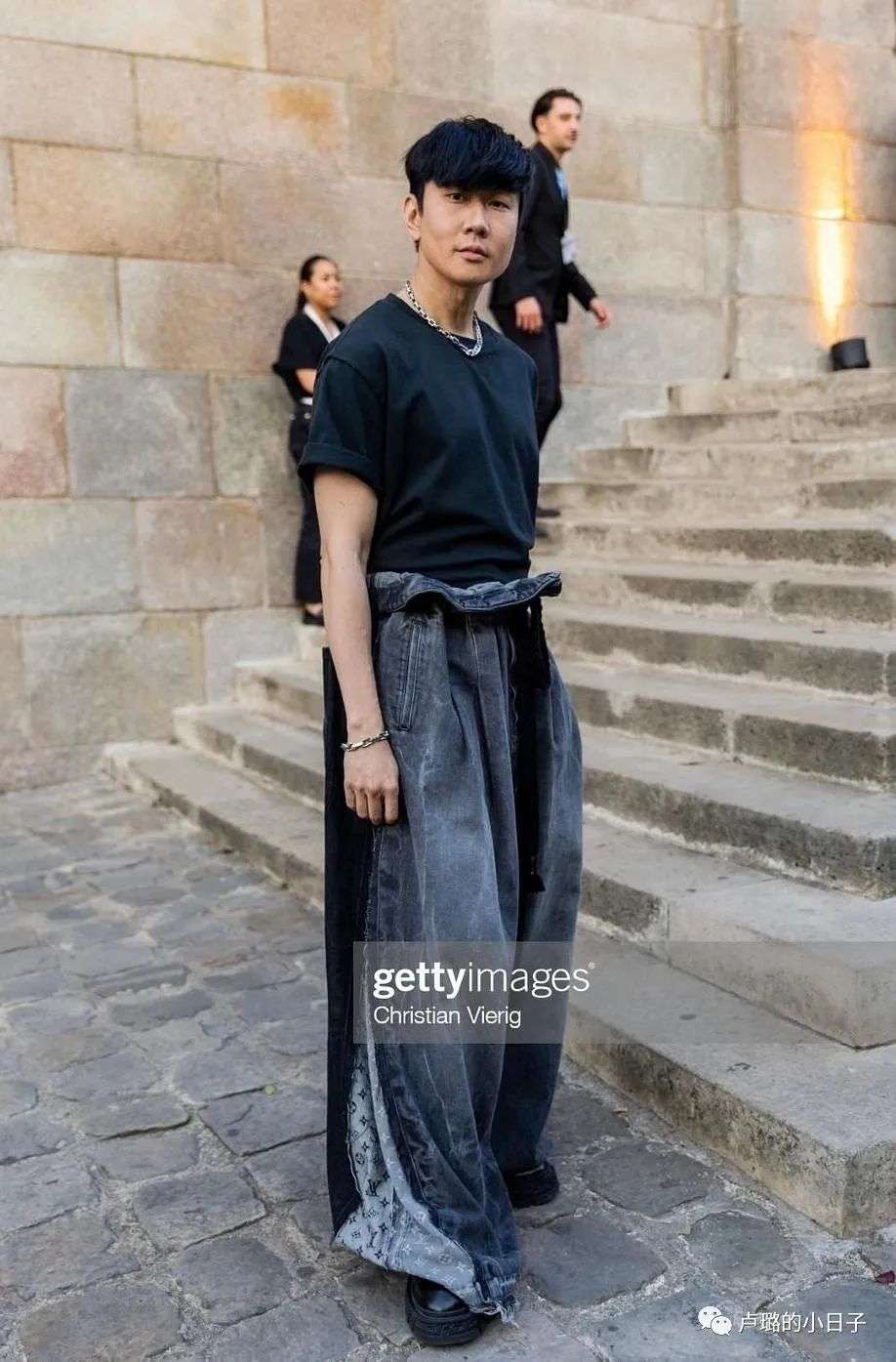 林俊杰穿的这身黑T配超宽大牛仔裤,让我想起了之前同是来巴黎看秀的周杰伦,现在男星都喜欢这种“松弛感”了吗?没想到男人也有属于他们的“瑜伽裤”,这瑜伽裤能塞下多少桶油,和多少个人呢?