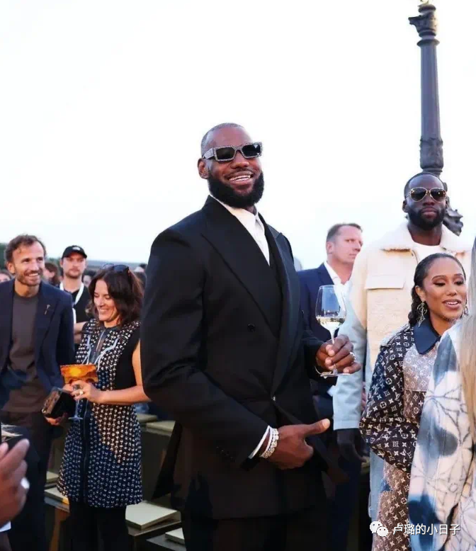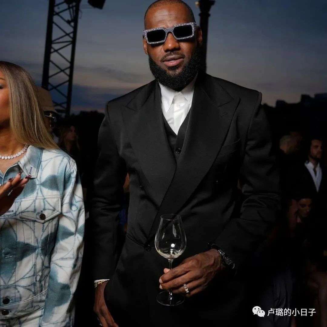 群星云集,这场秀已经够精彩了吧,现场竟然还有几位熟悉的NBA面孔,詹姆斯,大家可太熟悉了。一身黑色西装范儿十足,LV镶钻眼镜更是亮眼,举起酒杯,一副霸道总裁的模样。
