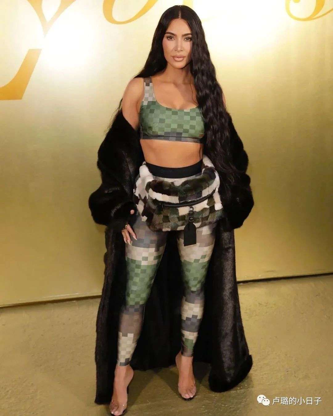 卡戴珊这身“马赛克”,和蕾哈娜穿的有点像,不过添加了迷彩元素,又是菲董的特别设计,菲董自己也穿了同款。