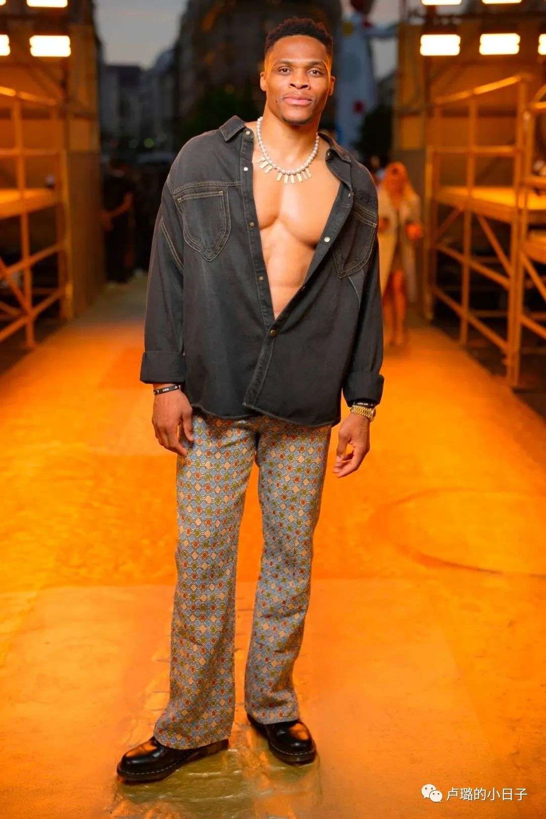 “NBA第一潮男”威少也来凑了热闹,穿上LV的牛仔夹克,当然,追时尚的他没好好穿,敞开扣子还秀了秀壮硕的胸肌。