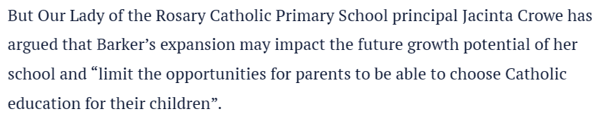 对于Barker的扩建,Crowe还表达了对可能会出现的交通拥堵加剧和学生安全问题的担忧。她说:交通拥堵会对附近居民的生活方式、使用服务设施,产生负面影响。Our Lady of the Rosary Catholic Primary School简介:
