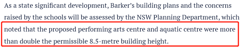 在2022年的NAPLAN考试中,该校取得了591.6分的平均成绩,在新州排名第257名!在2022年的HSC考试中,该校在全州排名第391名。2023年该校的学费为:7-12年级,$6970-$7410。与此同时,Broken Bay天主教教区也批评了Barker的建筑计划。该教区表示:新州规划部也指出,Barker拟议的表演艺术中心和水上运动中心是允许建设的8.5米建筑高度的因此,规划官员批评了这一新建筑的设计,以及对交通、停车、邻居的影响。据规划部的一位女发言人说,规划部正在等待Barker学校对这些问题的回应,稍后会针对这些问题对该建设计划进行重新评估。遭到这么多人的反对,看来Barker College想要成功扩建并不是一件容易事啊。但,不管多难,该校都得争取尽快扩建才行,不然,它随时都可能会被巨额罚款...