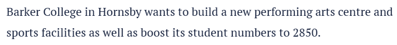 然而,最近Barker官宣了一个斥巨资升级校园、扩大招生的计划,给很多家长送来了“春风”...但计划没有变化快,Barker此举却遭到来自周边私校的强烈反对,这些教会学校觉得Barker College升级会导致自己学校招不到学生了...不得不说,Barker目前处在了“两难”境地,扩建遭到了强大阻力,不扩建又不能满足强劲的入学需求,更重要的是,学校或将面临巨额罚款!Barker College斥巨资升级校园、扩大招生,