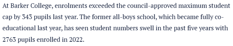 尤其是在去年完全变成了男女混校后,该校的入学人数彻底超出了市议会批准的最多学生数标准!要知道,学生人数上限由地方议会和州规划当局制定的,主要是从当地基础设施、停车、噪音影响、学校周围的交通状况等方面考虑的。每所学校的学生人数上限都是经过合理计算得来的,一旦学校超过了这个上限,很可能就会给周边的社区、道路交通造成负面影响!因此,地方议会一般会严格控制每所学校的学生人数上限!如果私校达到了人数上限,学校则需要申请增加学生人数,得到批准后才可以“扩招”!但,如果私校擅自违反人数限制规定,地方议会则有权对违规学校采取法律行动,对于私校来说,违规“扩招”绝对是得不偿失的行为。但看着长长的入学排队名单,学校很多时候也“于心不忍”...对此,Barker College校长Phillip Heath就表示,“人们对男女同校的兴趣,导致学校各年级的入学申请人数大大增加,新增的学生几乎都是女生。”并且一直到2030年,人们对学校的热情都会只增不减。所以,Barker的扩建刻不容缓!作为悉尼北岸私立男女混校的佼佼者,Barker College近些年来,一直深受华人家长的喜爱。如今该校准备扩建校园,提高学生人数上限,对当地的华人家长来说,绝对是一大利好!
