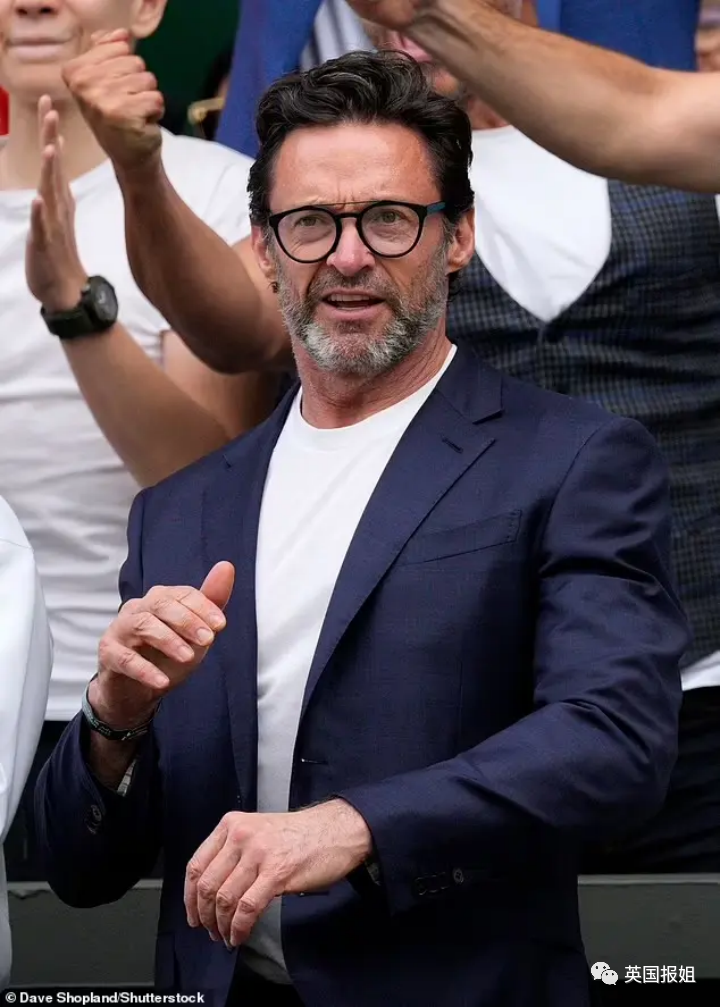 狼叔休·杰克曼和妻子也来看决赛了。狼叔的穿搭十分简单粗暴,西装外套+白T恤,只有身材好的人才敢这么穿吧。