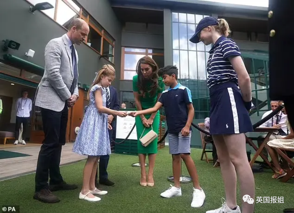 一名16岁的网球球童透露,凯特和威廉在培养路易斯对网球的兴趣,他正在接受球童的训练。学习如何安静地站在球场后面,不乱动不乱讲话。等他“稳重”一些的时候,估计凯特也会把他带出来。
