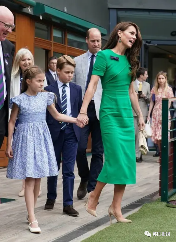 值得一提的是,今年的温网也很能体现出凯特地位的提升。威廉在旁边完全沦为绿叶,在场内参加活动时,他也走在凯特后面。凯特不光成为了家庭代表,还代表整个王室为冠军颁奖。