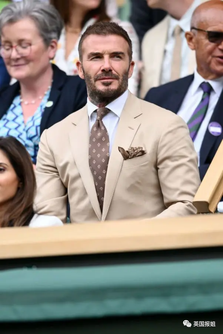 说到英国男人,小贝虽然没赶上决赛,但也看了一场比赛,这次他没带家人。