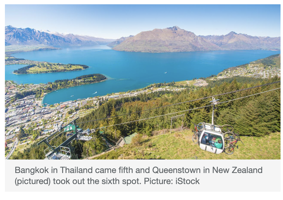 至于新西兰,奥克兰并不是全球唯一的代表城市,风景如画的南岛小镇皇后镇也入选了。它在名单上排名第六。