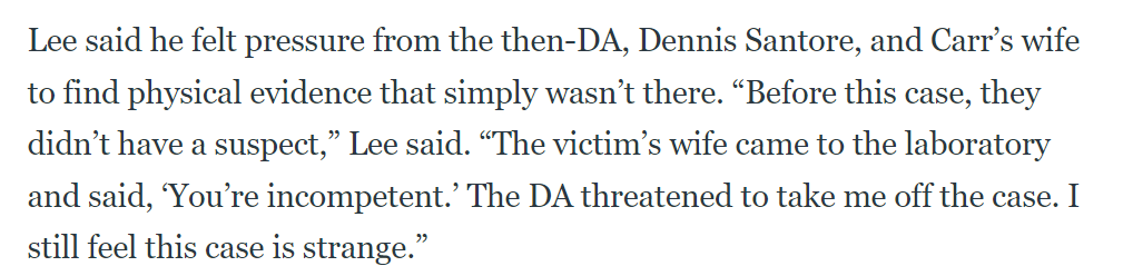 “他们用今天的标准来评判30年前的法医学技术。”事实上,20 世纪 80 年代和 90 年代专家广泛使用的法医学技术(包括毛发颗粒和咬痕证据)近年来已被怀疑为“垃圾科学”,并在法庭上被裁定不予采用。