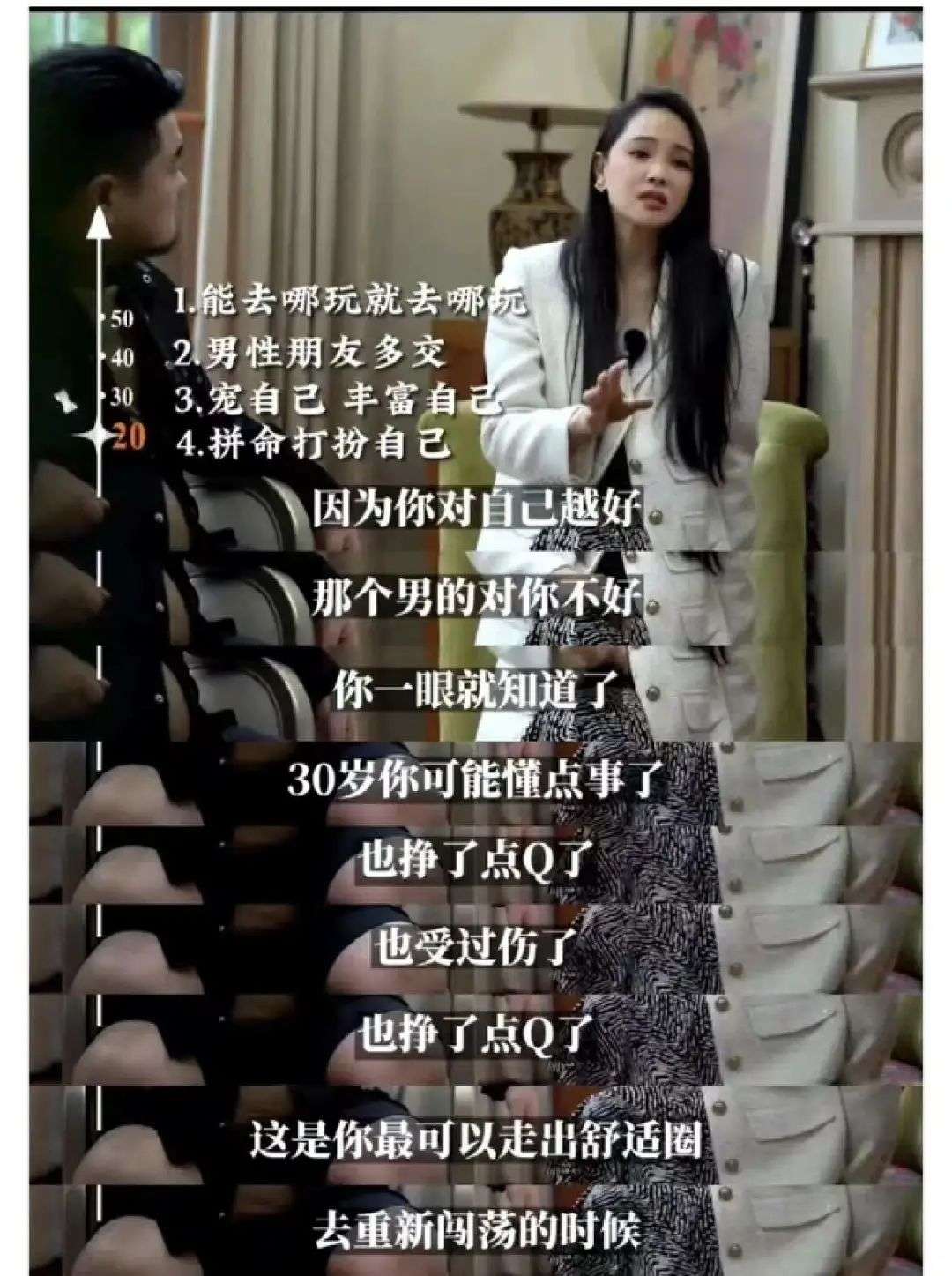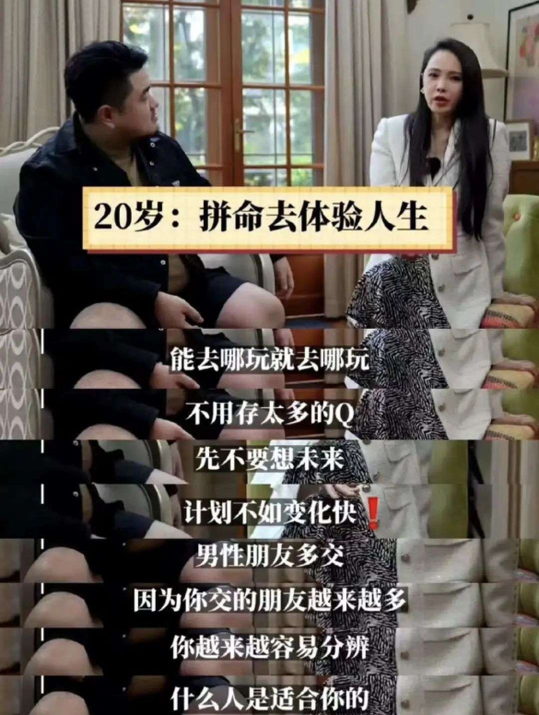 比如她给20多岁的女生的建议,是拼命地去体验人生,想去哪玩就去哪玩。