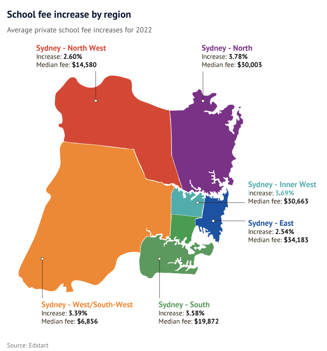 Futurity的数据显示:在2033年悉尼家长平均需要支付$5357的天主教中学学费、$17524的独立学校学费、$462的公立学校学费。
