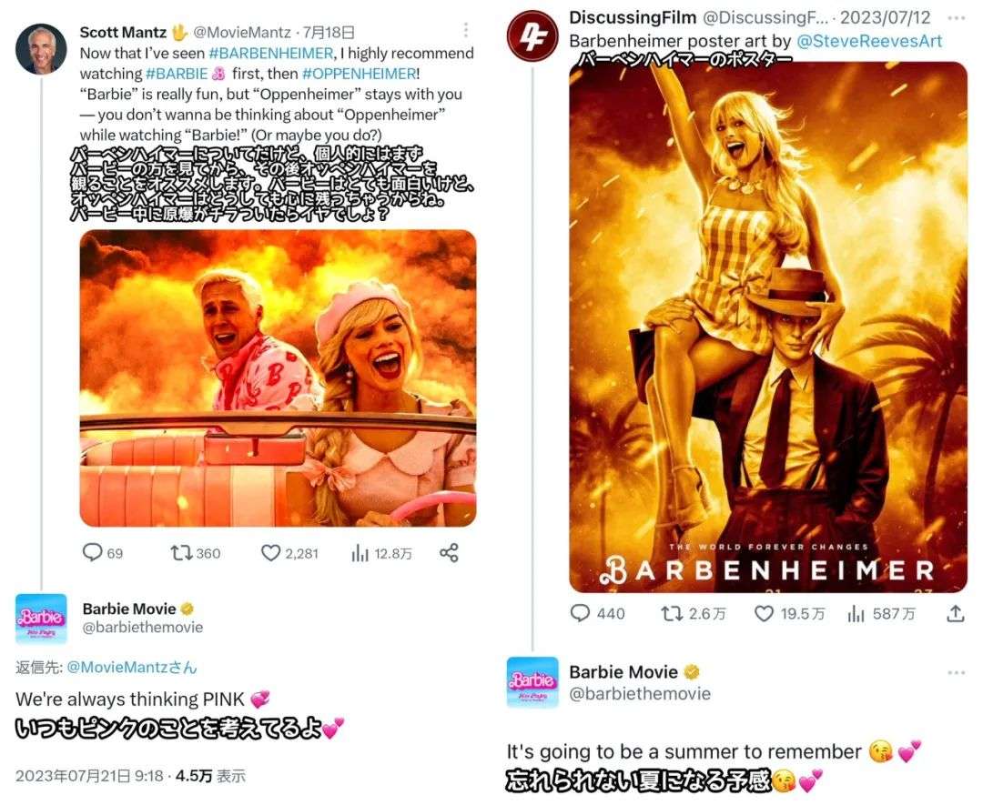 然而《芭比》的官方皮下既没有考虑到日本人敏感的神经,也没有察觉到日本人其实私底下很早就不满Barbenheimmer这对CP,于是频频下场亲自磕CP,终于磕出了大麻烦。