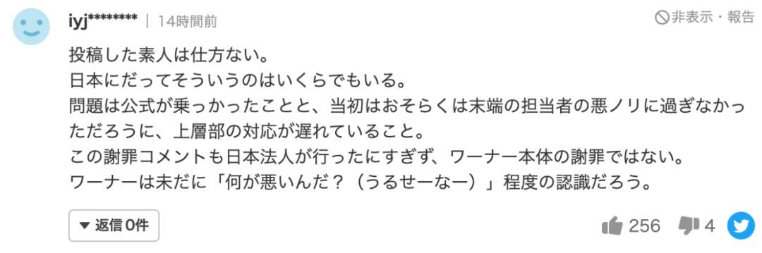 但是,有日本人发现了华点,美国总公司并不是在官方网站和官方账号上道歉的。