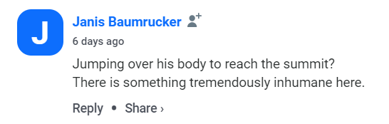 “那里发生的事情是可耻的。把一个活着的人抛下任他死去,只是为了创造自己的个人纪录。”