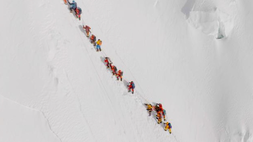 然而,一群登山客为了登顶破纪录,不仅丢下受伤的雪巴人不管其死活,甚至还跨过他的尸体,继续向上攀登。