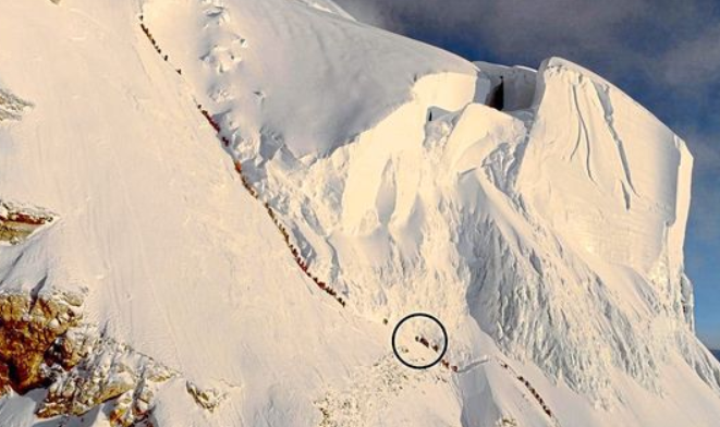 “许多登山者和雪巴人一开始还试图劝说让他回去,因为他的装备很差,而且登顶窗口期间天气也很恶劣,但他不听,然后就摔倒了。”