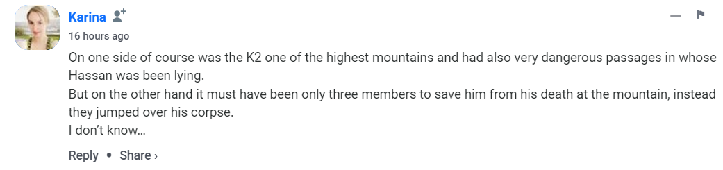所以有登山客表示,哈桑的死亡是一场悲剧,但他自己本身也有责任。