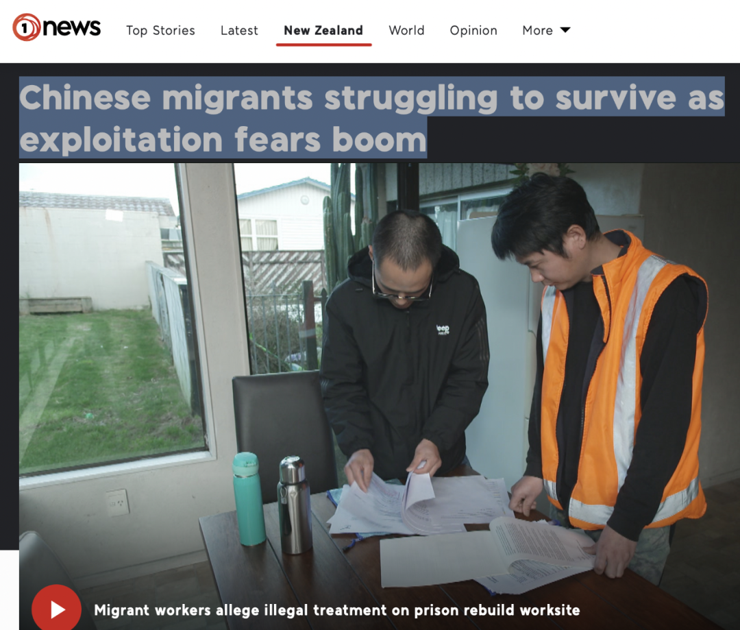 万般无奈之下,他们主动给新西兰媒体爆料,说他们交了中介费,来到新西兰做工,却被中介抛弃,又被老板弃用,日子过不下去了。