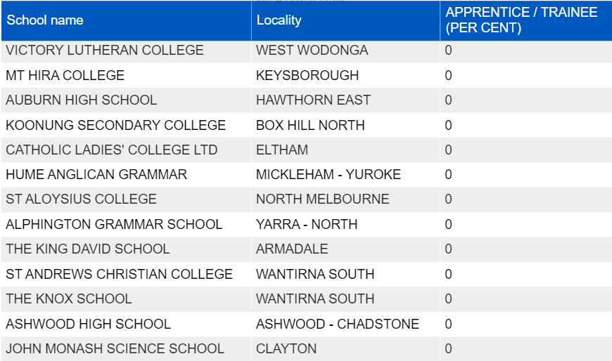 接受学徒或者培训比例最高的学校,如下所示: