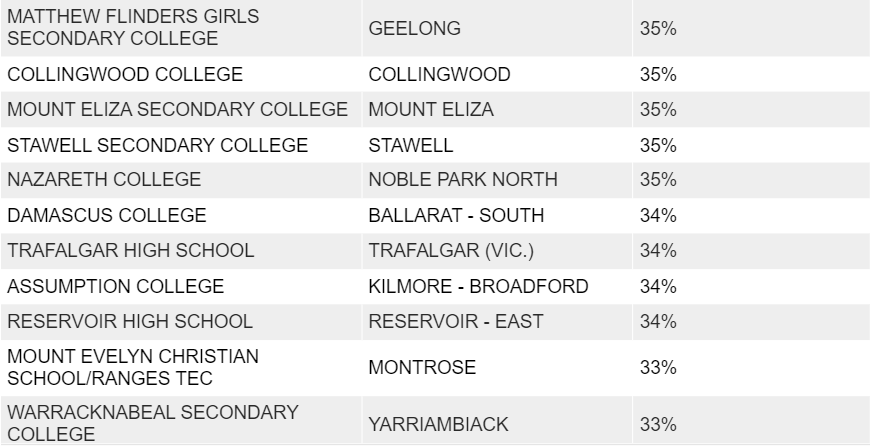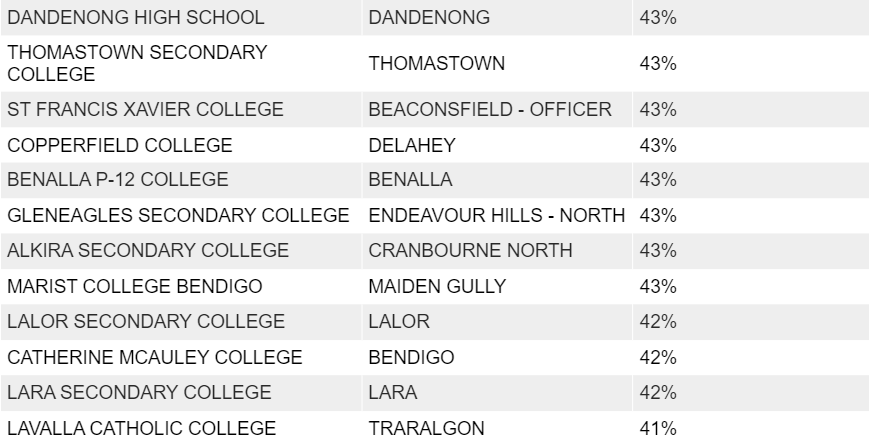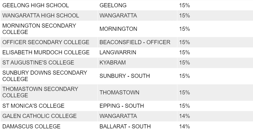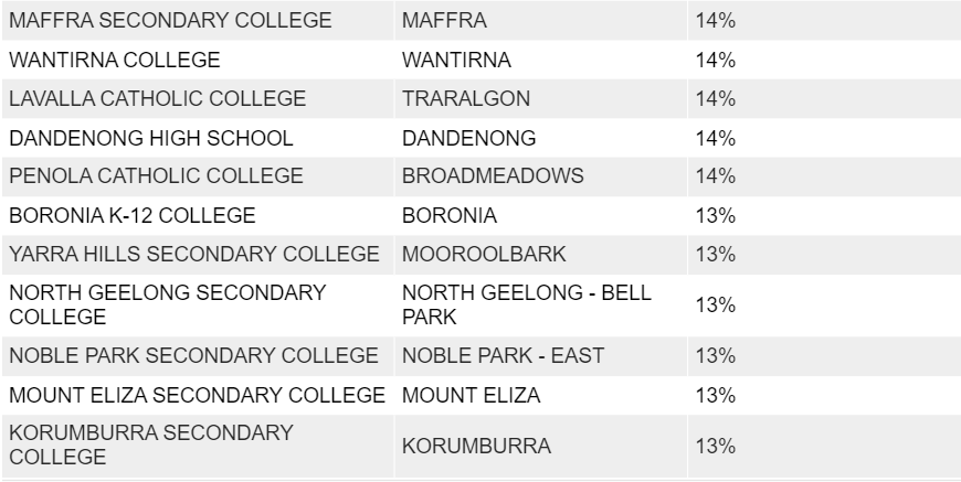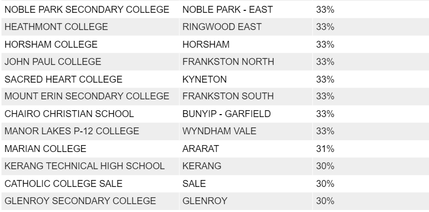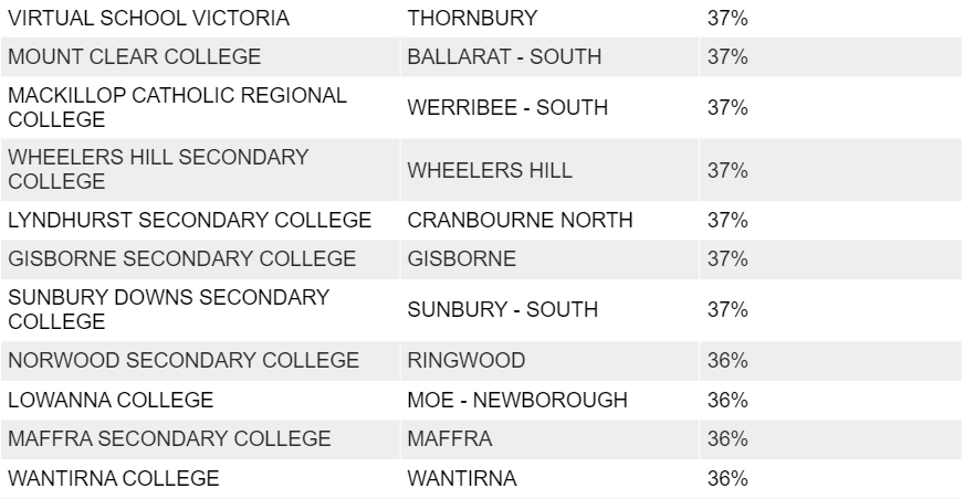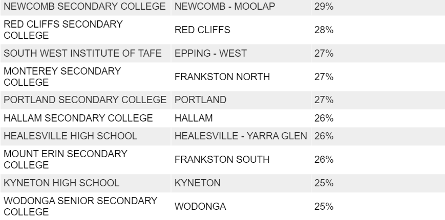 Numurkah Secondary College,这一比例高达40%;