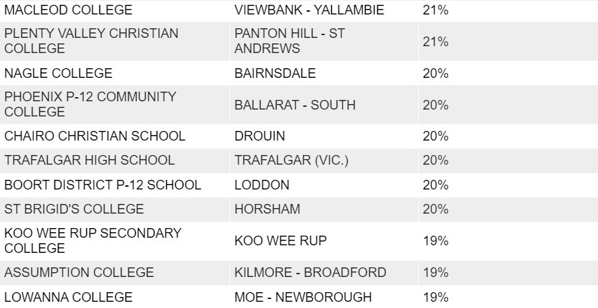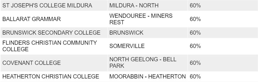 Catholic College Wodonga (29%)。