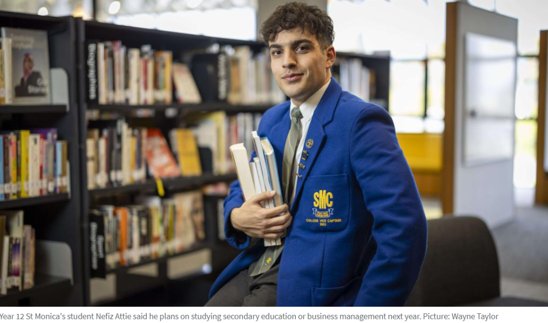 St Monica's College Epping 12 年级学生 Nefiz Attie计划明年上大学。