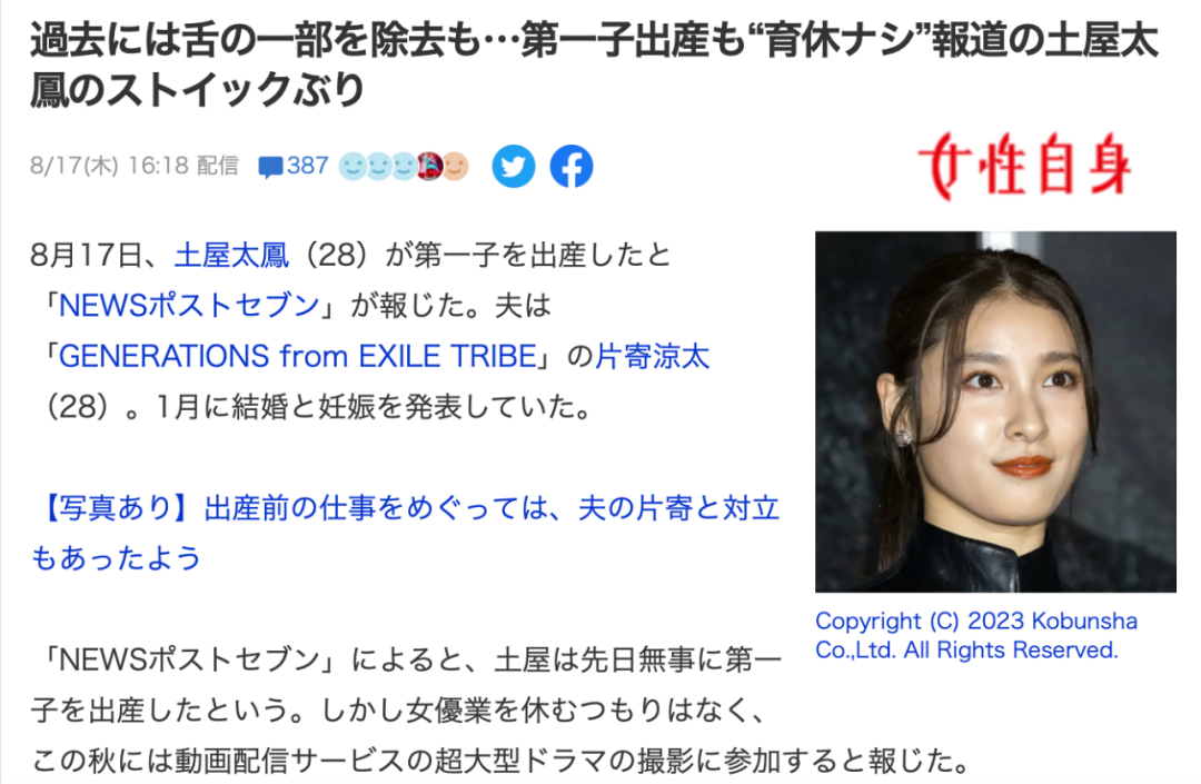 更有甚者,认为她这样做会影响到丈夫片寄凉太的爱豆事业。