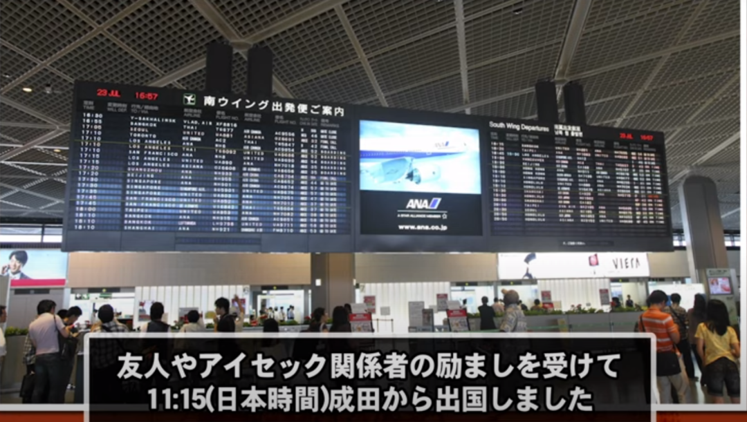在朋友和AIESEC成员的鼓励下,8月14日11:15分友利香从成田机场出发。
